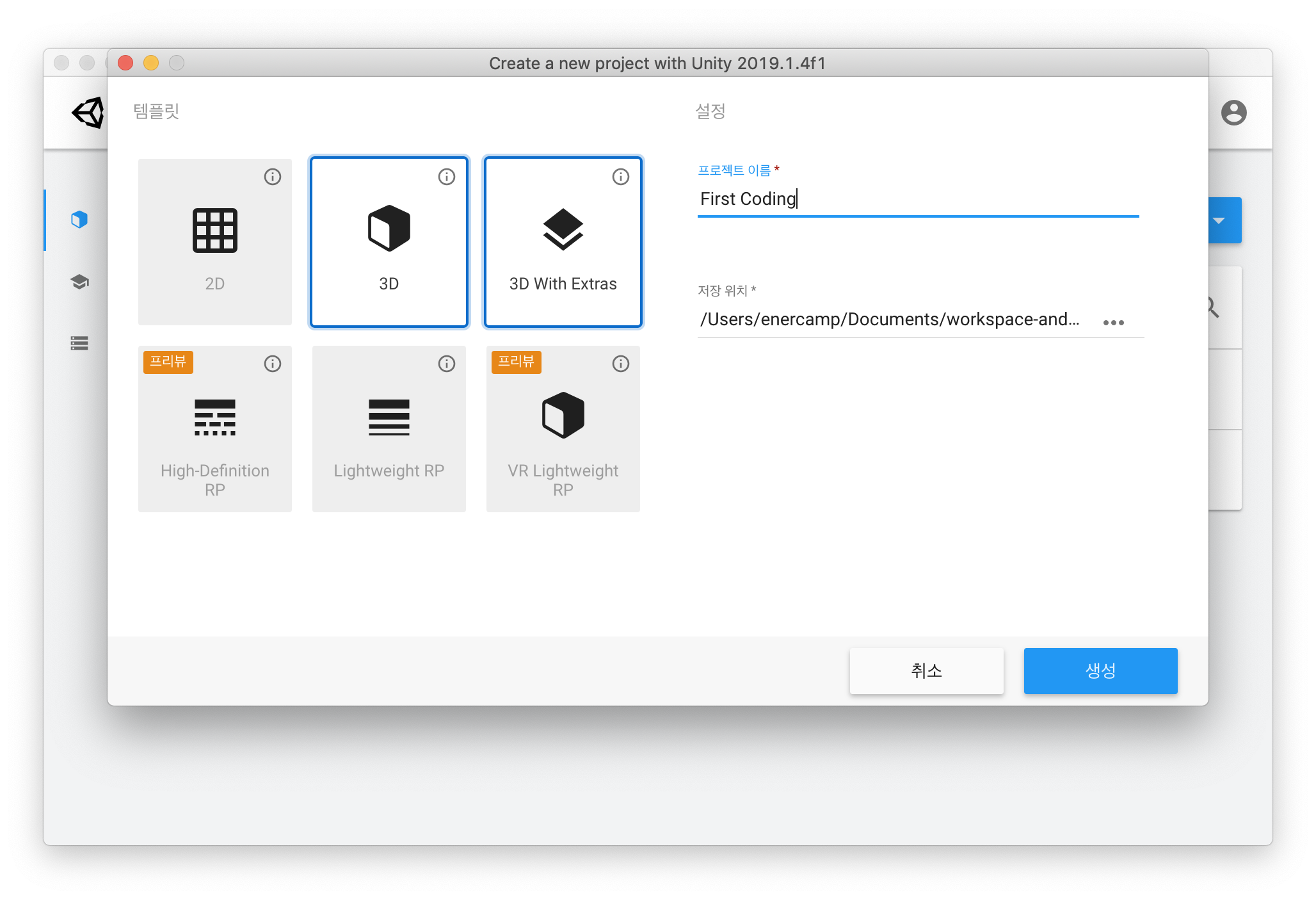 프로젝트이름은 First Coding 으로 하겠습니다.