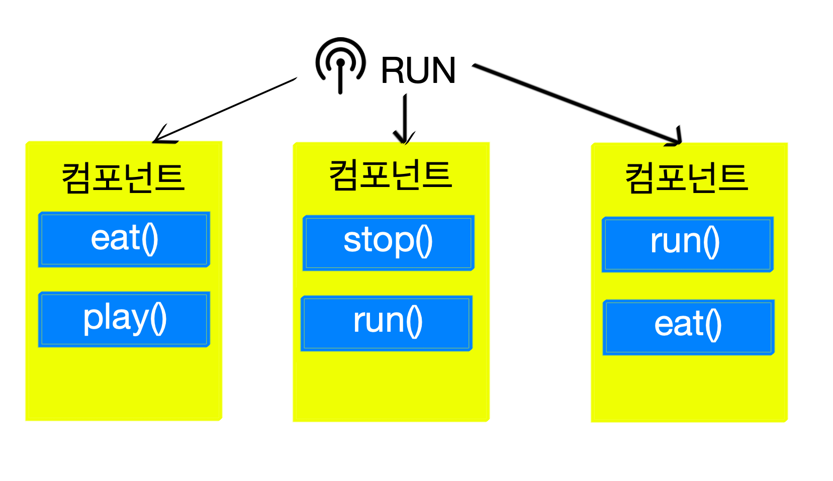 컴포넌트는 서로 독립적이기 때문에 어떤 컴포넌트의 특정 기능을 실행 시키고 싶을때 직접 찾는 방법 대신에 메시지를 날리는 방식을 사용합니다,