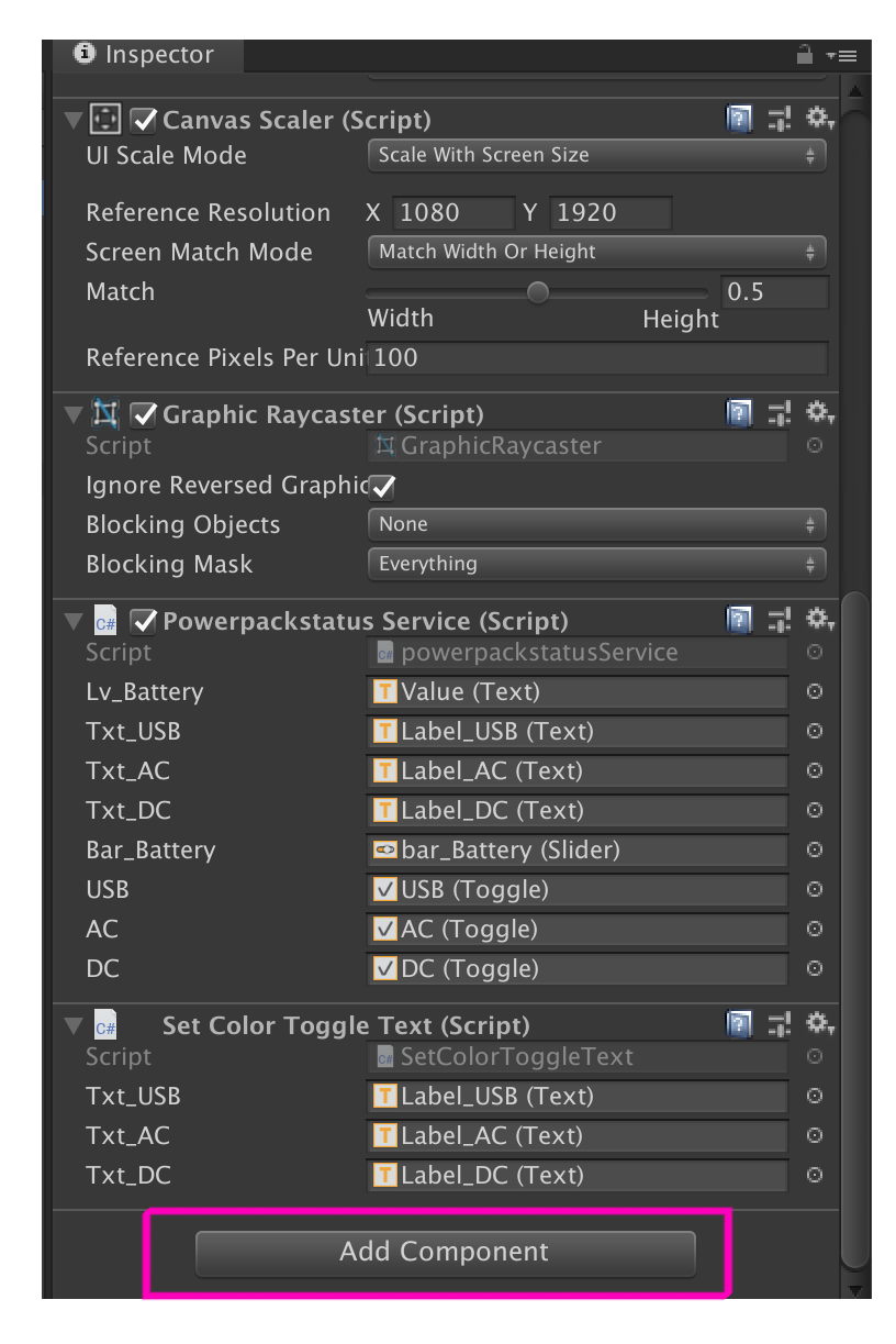 인스펙터창에서 확인 할 수 있는 컴포넌트는 다음과 같습니다.
