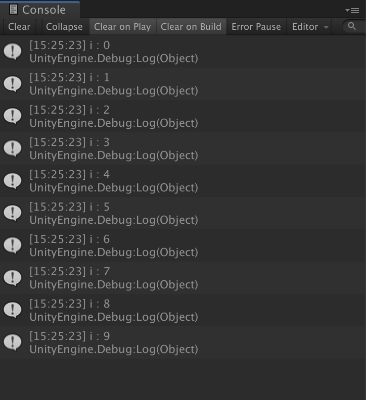 Debug.Log("i :" +i);