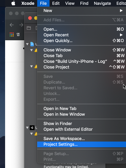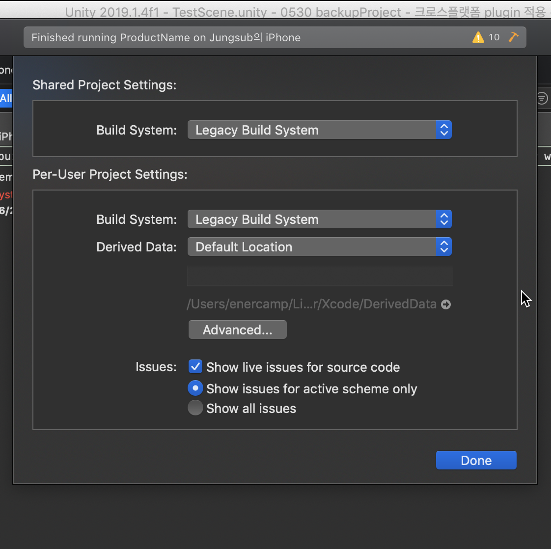 Build System : Legacy Build System 으로 설정 후 Done