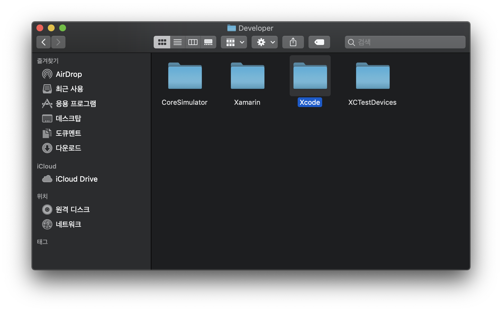 Developer 폴더에서 Xcode 폴더 더블 클릭