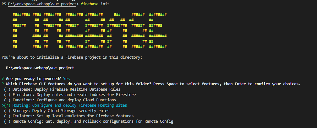 ? Which Firebase CLI features do you want to set up for this folder? Hosting
