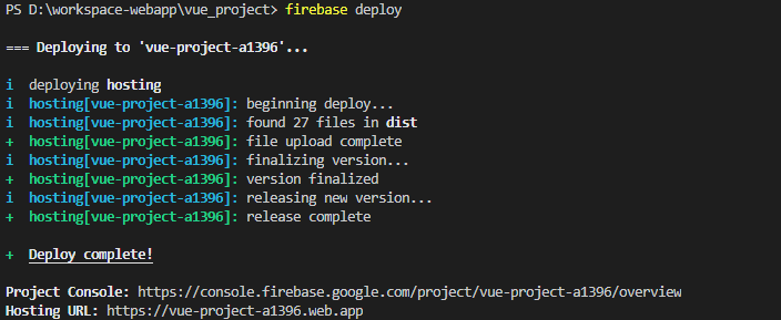npm run build로 dist 폴더를 새로 작성하고, firebase deploy로 파이어베이스에 배포하는 두 단계만 작업하면 됩니다.
