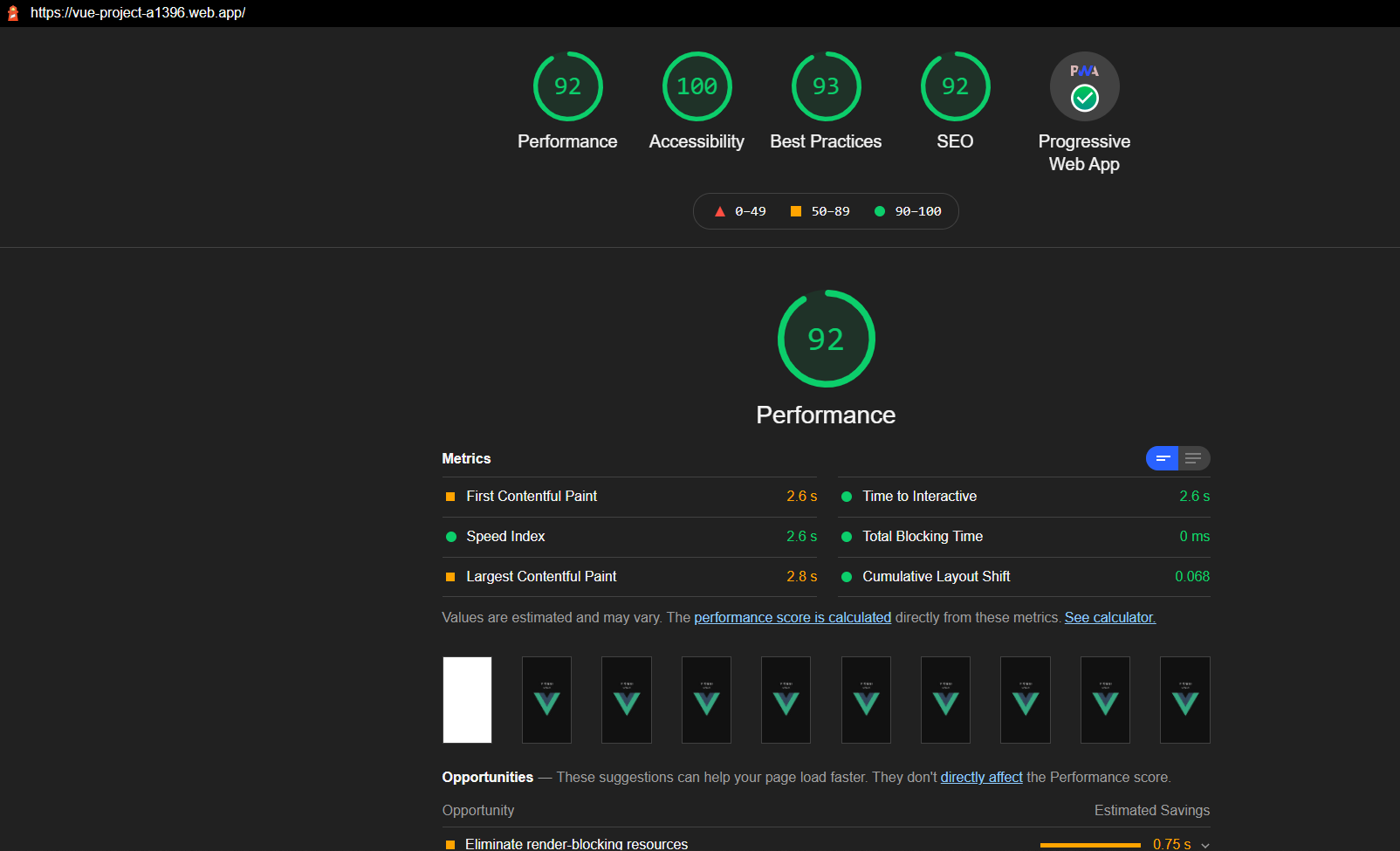 마지막으로 크롬 확장기능 라이트하우스를 통해 PWA 성능 테스트를 해보겠습니다.
