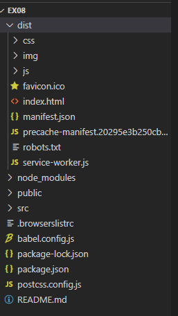위 명령어를 실행하며 앱을 빌드하면 다음 그림처럼 프로젝트 폴더안에 dist 라는 폴더가 생성됩니다.