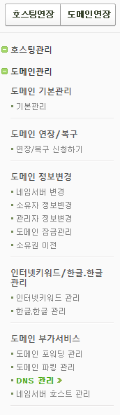 카페24에서 DNS관리 클릭