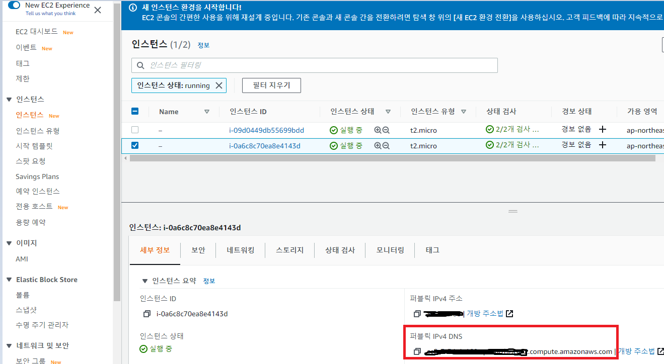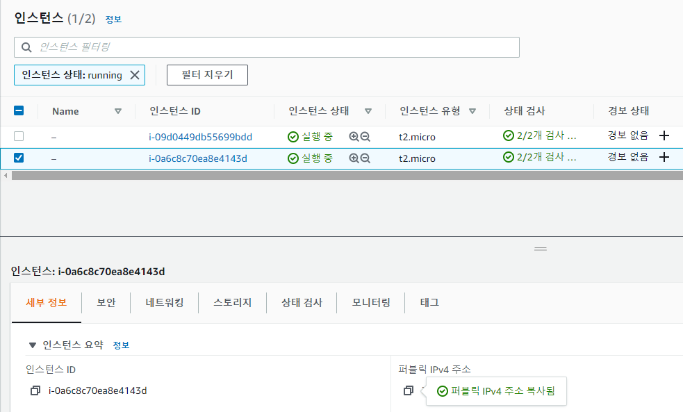 다시 aws 콘솔로 가서 퍼블릭 IPv4 주소를 복사합니다.