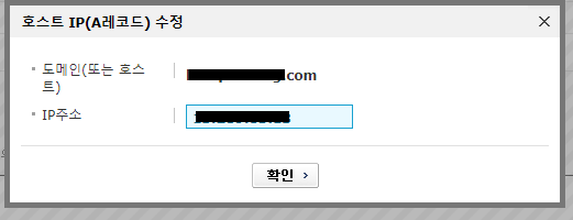 수정버튼 클릭 후 IP 주소를 aws 에서 복사한 퍼블릭 IPv4 주소를 입력 후 확인 버튼을 클릭합니다.