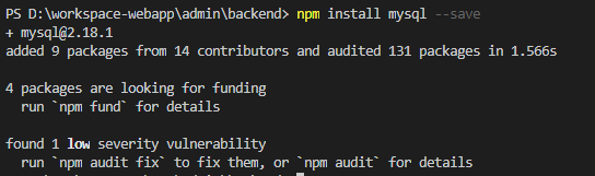 백엔드에 mysql, bycrypt 암호화 모듈을 설치합니다.