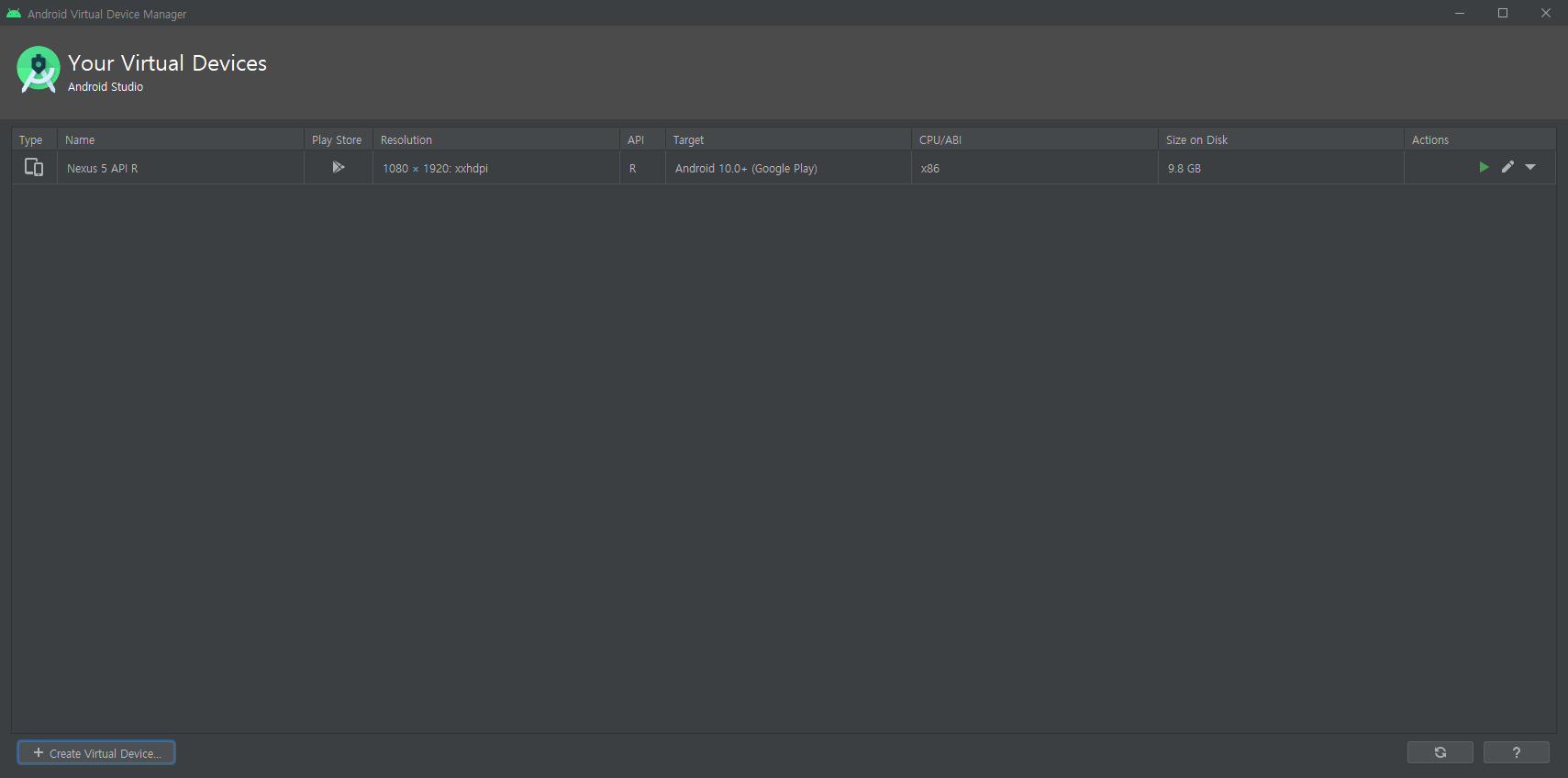 생성한 AVD를 더블클릭하여 엽니다.