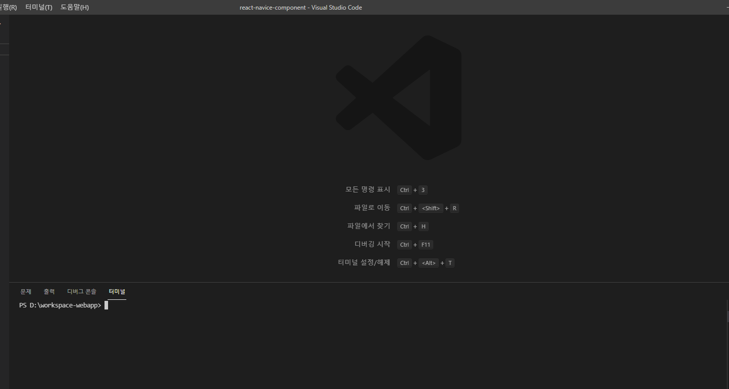 상위 메뉴에 터미널 -> 새터미널을 실행합니다.