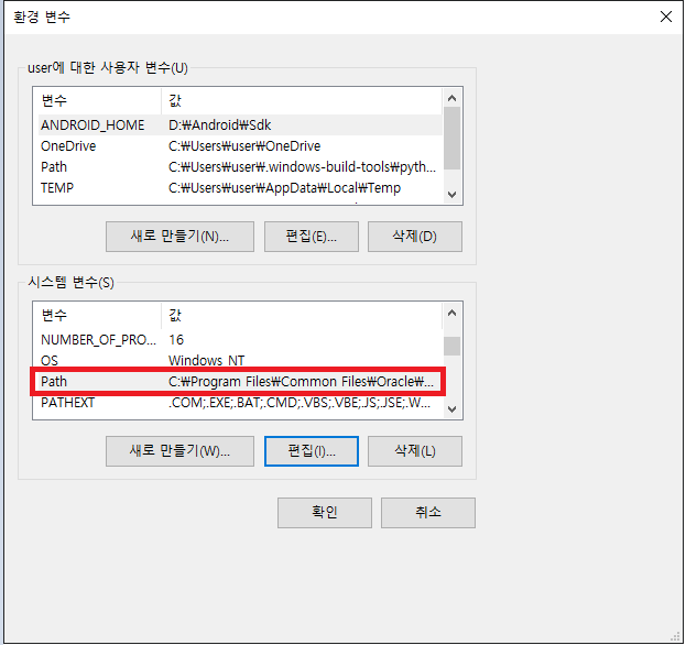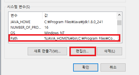 시스템 PATH 변수 편집