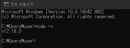 명령프롬프트 창을 열어 node -v 를 검색하여 버전이 나오면 성공적으로 설치된 것인지 확인합니다.