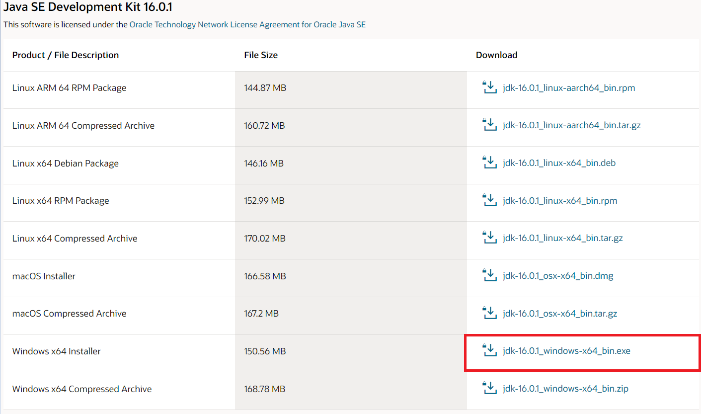 JDK Download 클릭 -> jdk-xxx.-x64-bin.exe 클릭합니다. (windows10 기준)