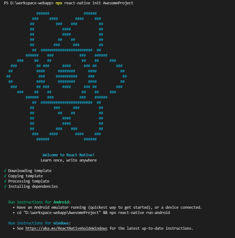 npx react-native init AwesomeProject