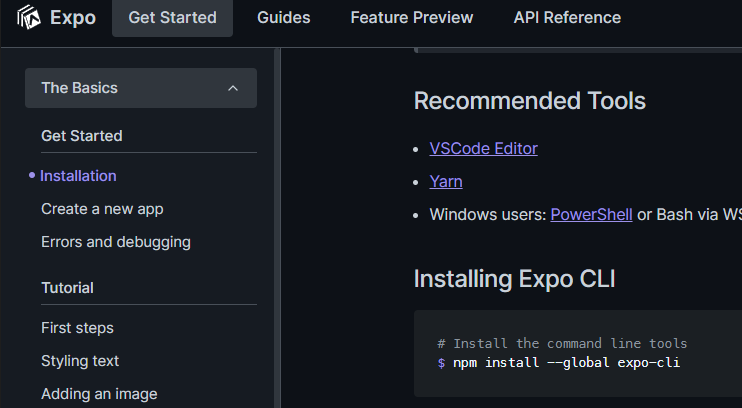 * 설치방법은 Expo공식 홈페이지(https://docs.expo.io/get-started/installation/)를 참고하세요.
