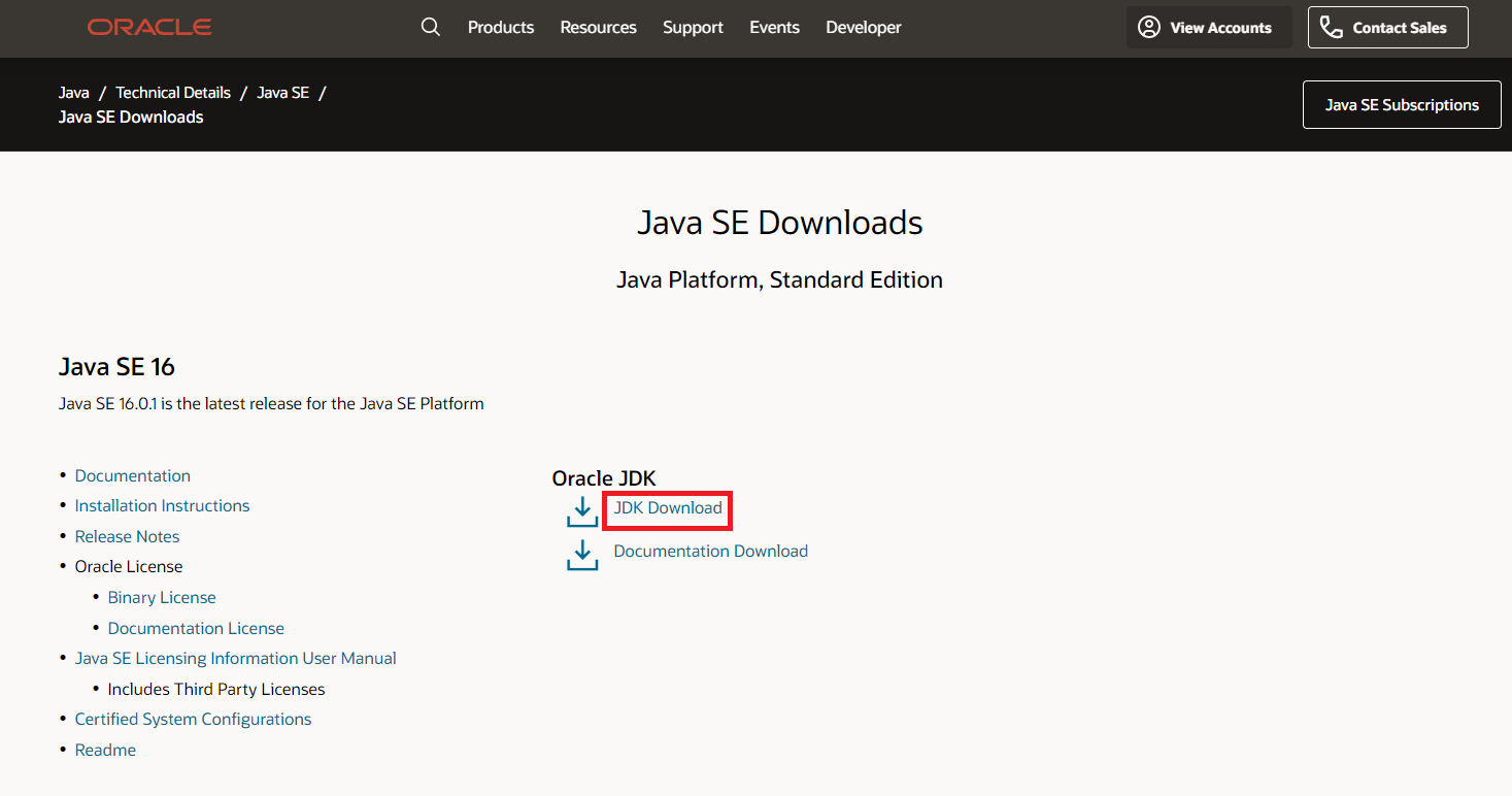 https://www.oracle.com/java/technologies/javase-downloads.html 사이트로 가서 자바를 설치합니다.