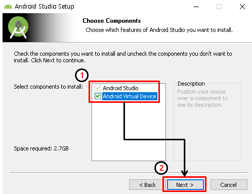 Next 계속 클릭하다가 아래의 화면이 나오면 안드로이드 버츄얼 디바이스(AVD)도 체크 후 함께 설치합니다