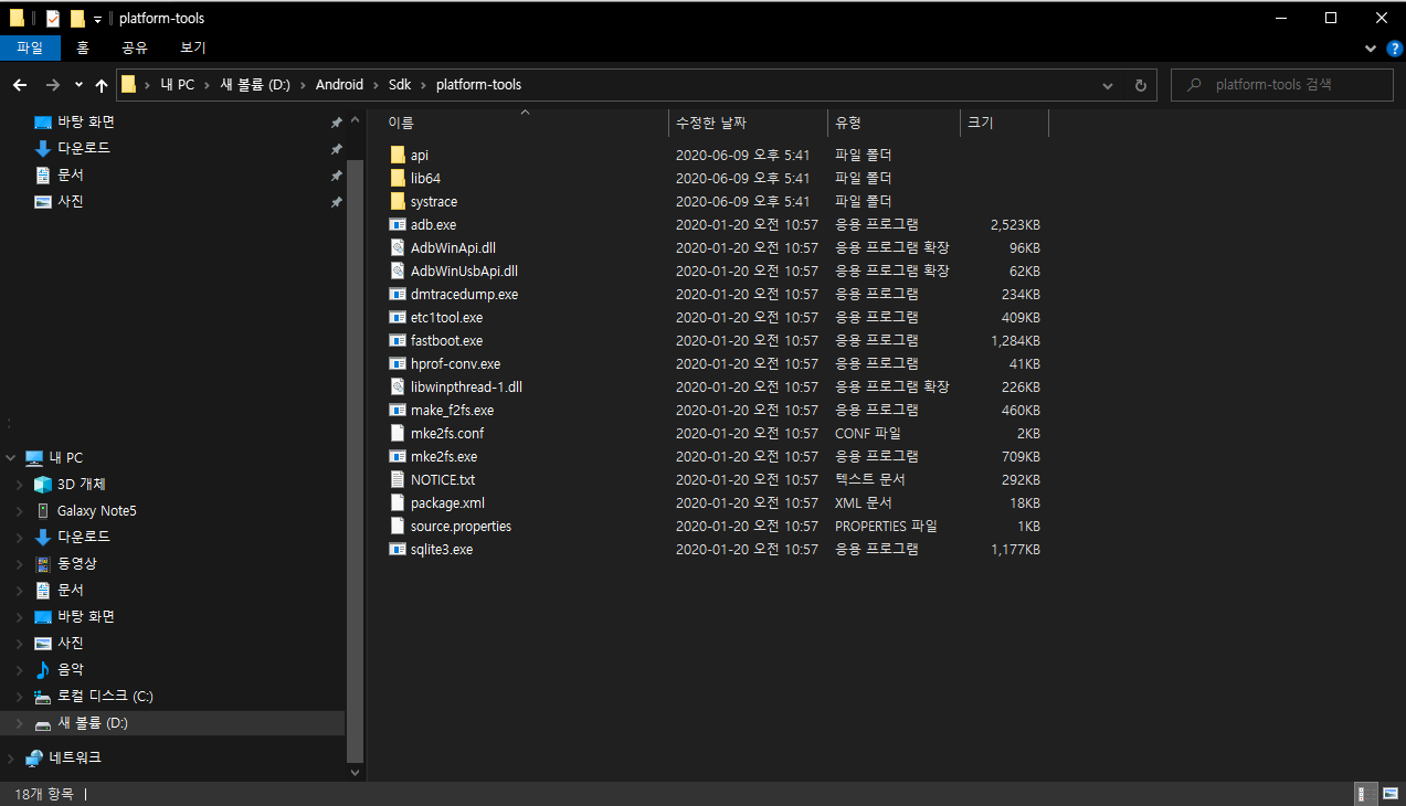 2. 안드로이드가 설치되어있는 ANDROID_HOME\platform-tools 으로 탐색기를 열어줍니다.