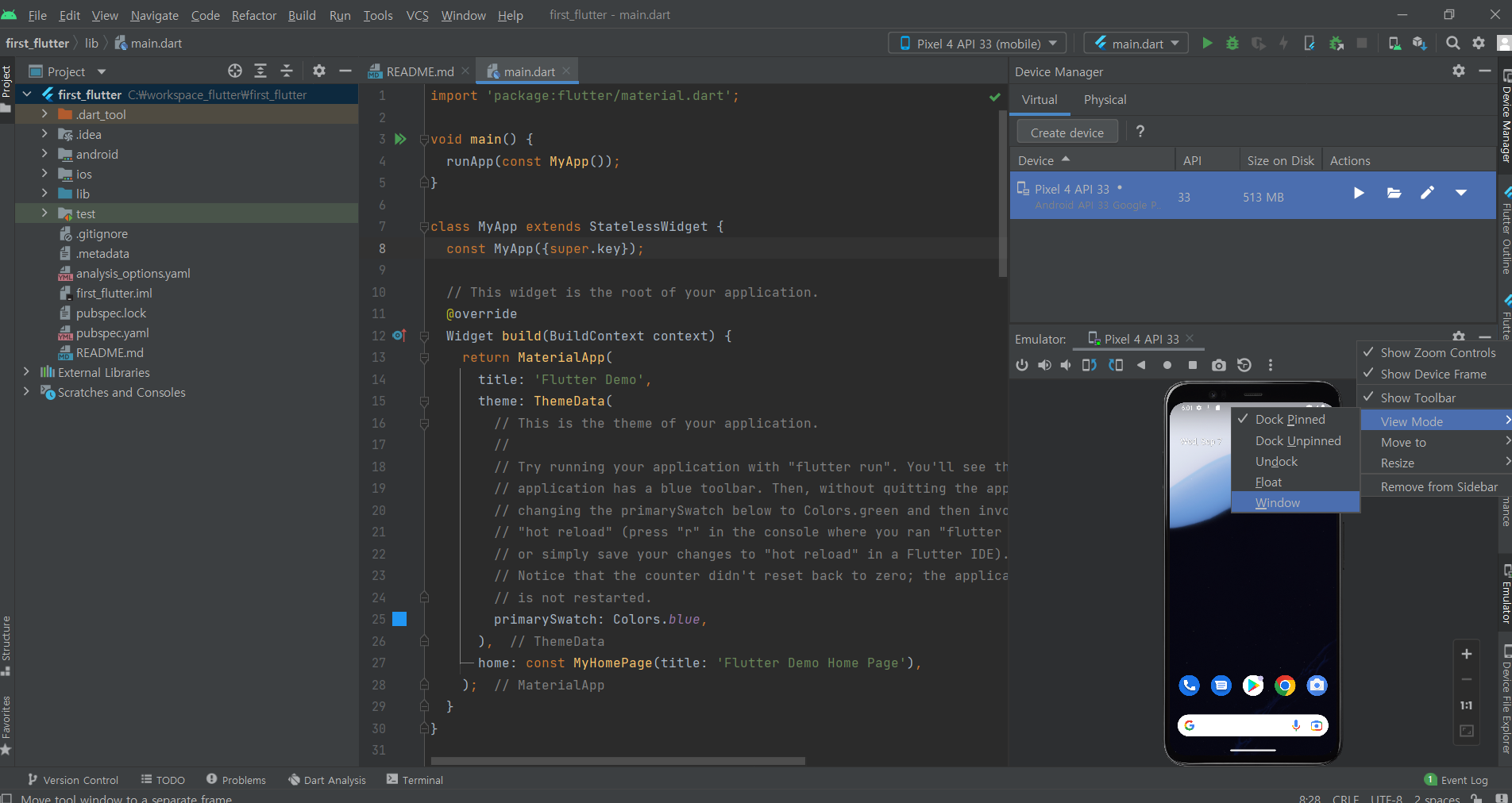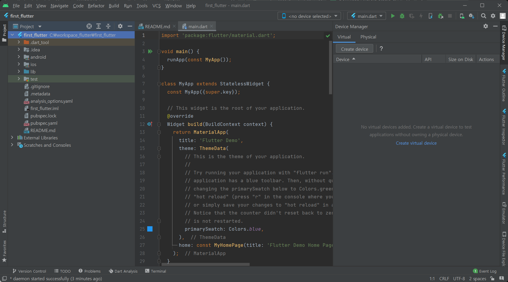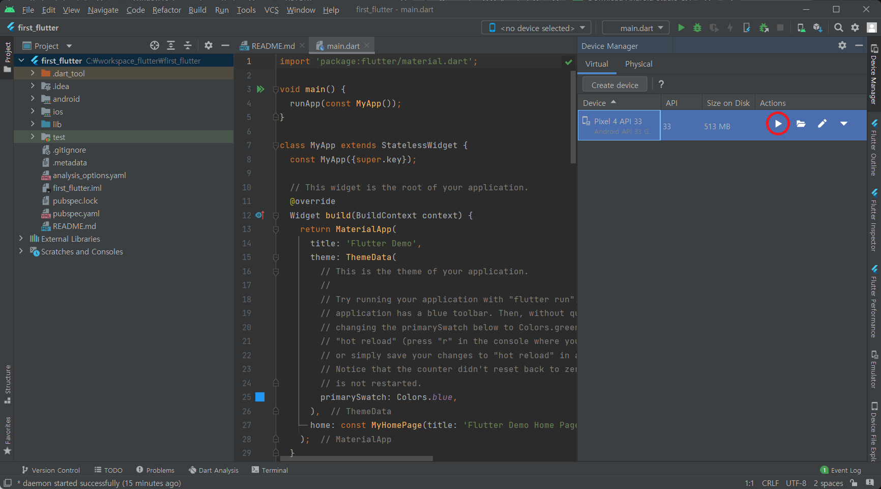이번에는 새 플러터 프로젝트를 생성해보겠습니다.