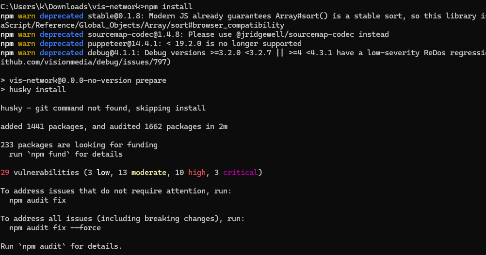 npm 명령어는 vis.js 공식홈페이지에서 확인하실 수 있습니다.