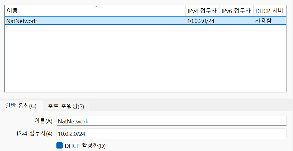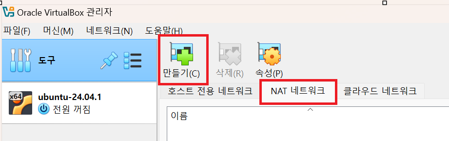 NAT 네트워크 -> 만들기 버튼 클릭