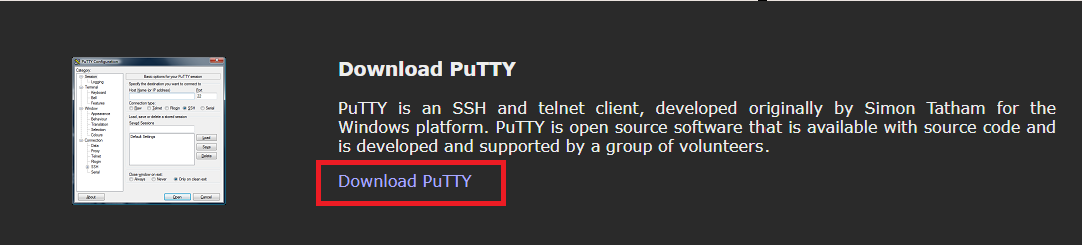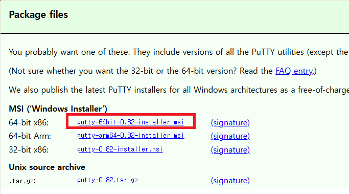 Download PuTTY 클릭
