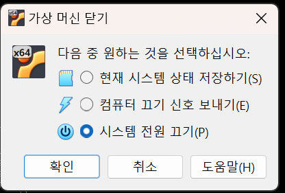 가상머신을 닫아줍니다.