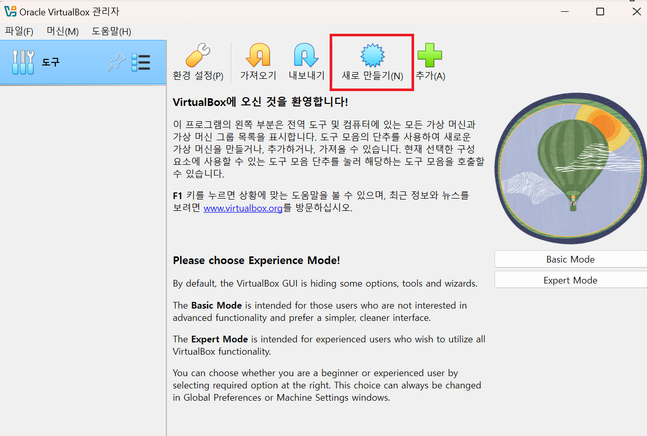 Finish 버튼 클릭하여 가상버신을 실행합니다.