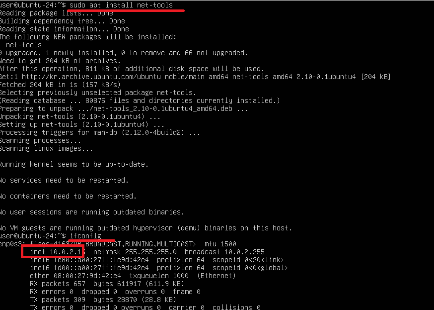 네트워크 도구인 net-tools를 설치합니다.