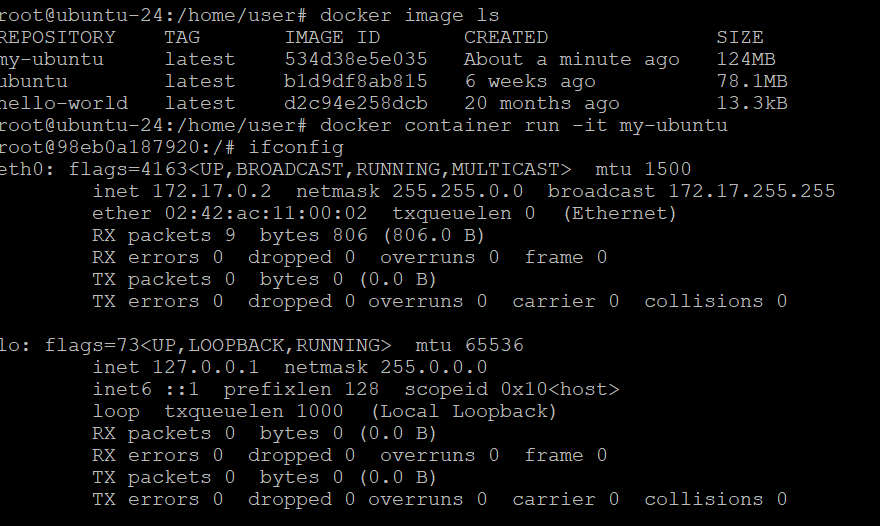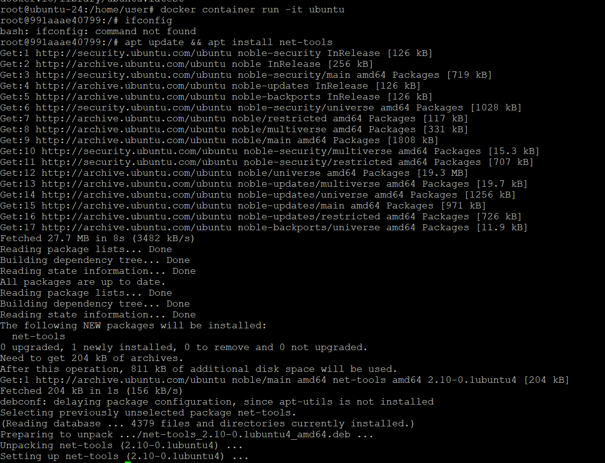 net-tools가 설치된 ubuntu 컨테이너 생성