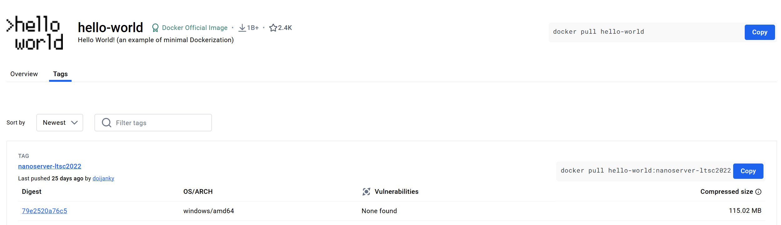 docker pull hello-world