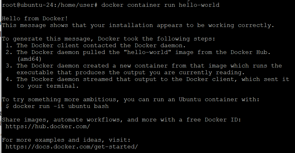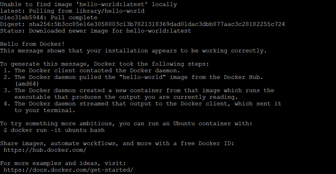 sudo docker run hello-world