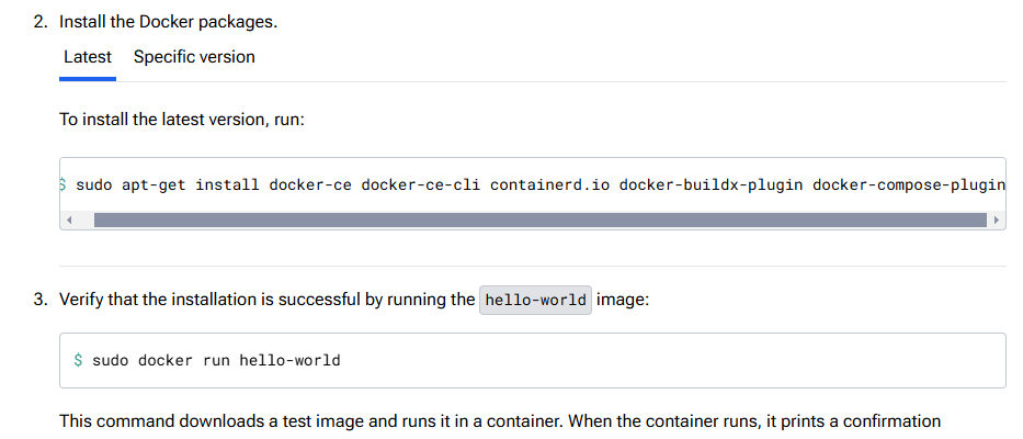 sudo apt-get install docker-ce docker-ce-cli containerd.io docker-buildx-plugin docker-compose-plugin