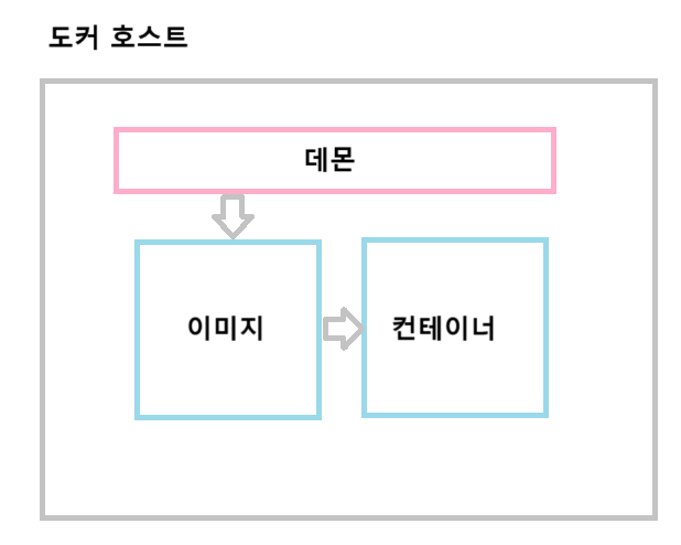 컨테이너 실행 명령어를 입력하면 도커 호스트의 데몬이 실행 명령을 요청받고, 도커 호스트에 있는 이미지를 컨테이너 형태로 실행합니다.