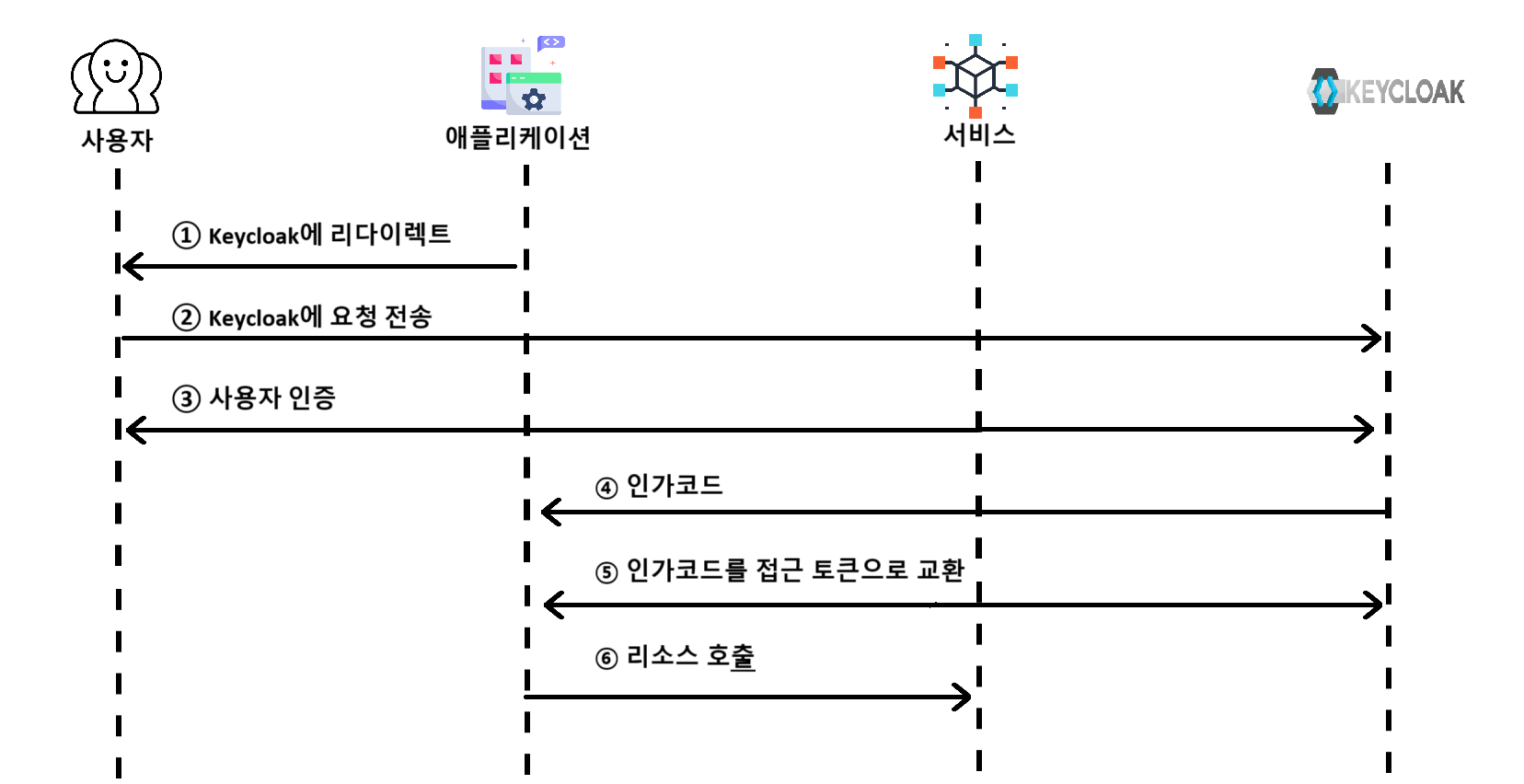 - 인가 서버 ( Authorization Server) : 클라이언트에게 접근 권한을 발급하는 서버이며 Keycloak이 해당 역할을 수행함.